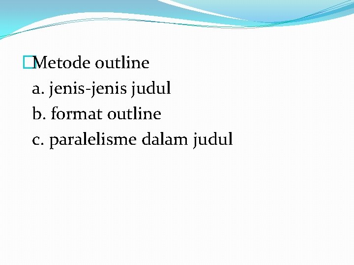 �Metode outline a. jenis-jenis judul b. format outline c. paralelisme dalam judul