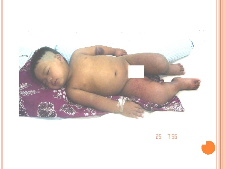 KOMPLIKASI Campak menjadi berat pada pasien dengan gizi buruk dan anak yang lebih kecil Diare dapat diikuti dehidrasi Otitis media Laringotrakeobronkitis (croup) Broncopneumonia Ensefalitis akut Reaktivasi tuberculosis Malnutrisi pasca serangan campak Subacute sclerosing panencephalitis (SSPE), suatu proses degeneratif susunan saraf pusat dengan gejala karakteristik terjadi deteriorisasi tingkah laku dan intelektual, diikuti kejang. Salah satu komplikasi campak onset lambat disebabkan oleh infeksi virus yang menetap, timbul beberapa tahun setelah infeksi.