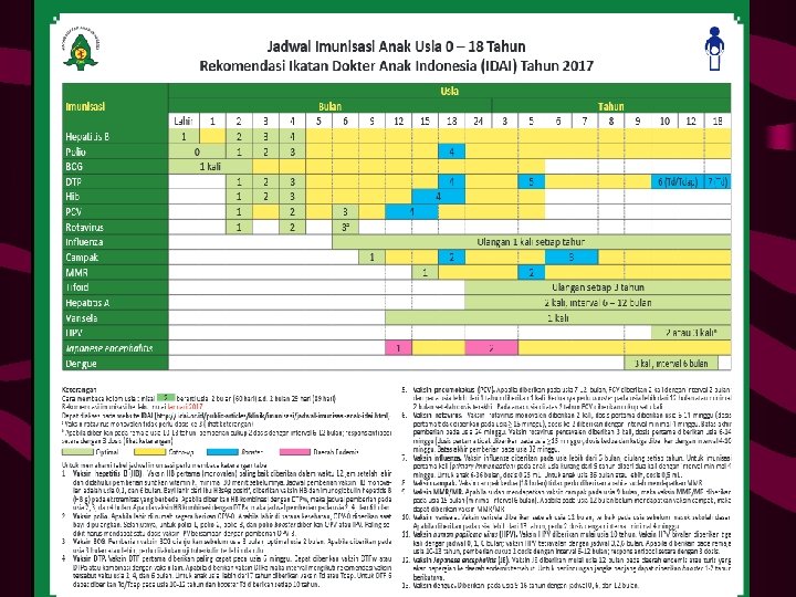 IMUNISASI • • • BCG POLIO HEPATITIS B CAMPAK-RUBELLA DPT-HIB-Hep. B (Penta-Bio) DENGUE ? ? HPV ? ? PD 3 l • • • MMR TYPHUS ABD CACAR AIR HEPATITIS A INFLUENSA PNEUMOKOKUS HPV ? ? ROTARIX DENGUE? ?