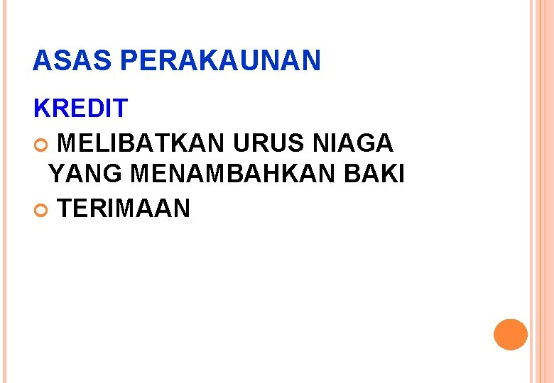 ASAS PERAKAUNAN KREDIT MELIBATKAN URUS NIAGA YANG MENAMBAHKAN BAKI TERIMAAN