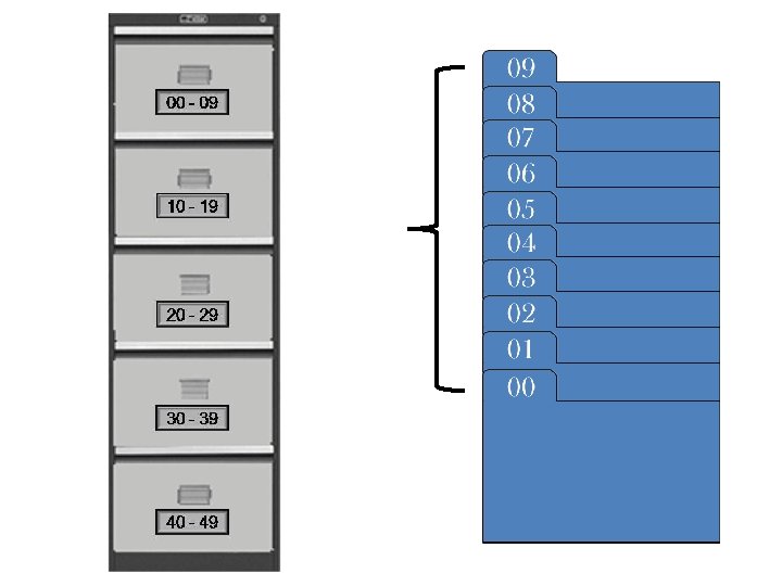 4) Map folder. Tiap folder ditempatkan di belakang guide sebanyak 10 buah dengan nomor berurutan mulai dari 0, 1, 2, … sampai 9. Agar folder-folder tidak tertukar satu sama lainnya pada guide berbeda, maka tiap-tiap folder diberi kode guidenya, contohnya: di belakang guide berkode 00, foldernya diberi kode 00/0, 00/1, 00/2, … sampai 00/9 5) Kartu indeks, kotak kartu, dan rak sortir.
