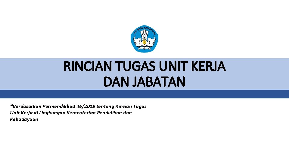 RINCIAN TUGAS UNIT KERJA DAN JABATAN *Berdasarkan Permendikbud 46/2019 tentang Rincian Tugas Unit Kerja di Lingkungan Kementerian Pendidikan dan Kebudayaan