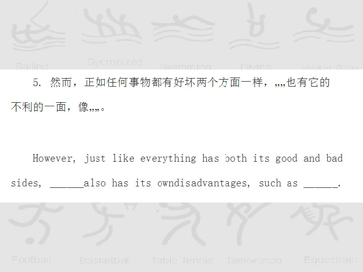 But every coin has two sides. The unfavorable aspects are also apparent. To begin with, _________(第 一 个 坏 处 ) To make matters worse, __________(第 二 个 坏 处 )Worst of all, _________________ _(第三个坏处) From the above analysis, I believe that the advantages outweigh the disadvantages. Therefore, __________________(结论)