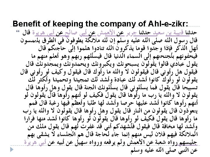 ﺍ ﺍﻳ ﻭ ﻡ ﺍﺍ ﺍ ﻳﻭ ﺍ ﺍ ﻳ ﻳ ﺍﺍ ﺍﻟ ﺍ ﺍ ﺍ ﻥ ﺍ ﺍ ﺍ Surah Kahf (18: 28) And keep yourself patient [by being] with those who call upon their Lord in the morning and the evening, seeking His countenance. And let not your eyes pass beyond them, desiring adornments of the worldly life, and do not obey one whose heart we have made heedless of our remembrance and who follows his desire and whose affair is ever [in] neglect.