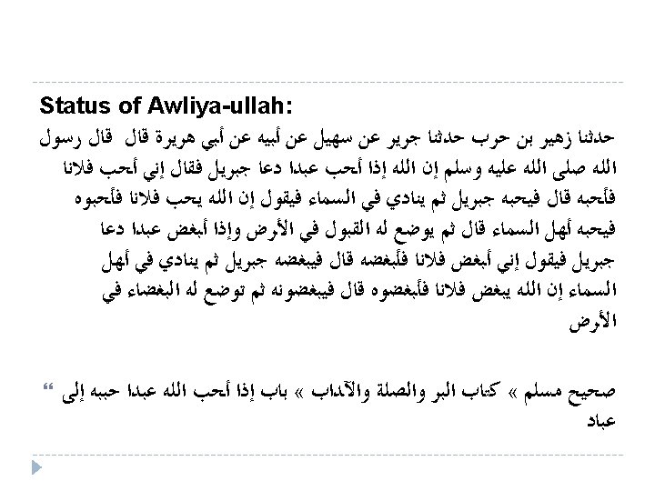 ﺍ ﺍ ﺍﻟـ ﺍ ﺍ ﻭ Surah Yunus (10: 62) Unquestionably, [for] the friends of Allah there will be no fear concerning them, nor will they grieve : ﺍ ﺍ ﺍﺭ ﺍ ﻥ ﺏ ﺍﻟ ﺍ ﺍ ﺩ ﻥ ﻳﺪ ﻥ ﺍﻕ ﺍ ﻭﺏ ﻥ ﺩ ﺍﻟﻩ ﺍ ﺍ ﺭ ﻥ ﻱ ﺍﻳﺓ ﻳﺪ ﻥ ﺭ ﻥ ﺍﺱ ﺍ ﺍ ﻝ ﺍ ﻭﻝ ﺍﻟﻩ ﺍﺀ ﺍﻟﻩ ؟ ﺍ " ﺍﻳ ﺍ ﻭﺍ ﺍﻟﻩ (Ibn Katheer, Tafseer ul-Quran ul-Azeem, Chapter on Surah Yunus)