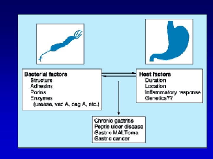 H. pylori infection and disease associations • Chronic gastritis • Duodenal ulcer • Benign gastric ulcer • Gastric carcinoma • Gastric MALT and non Hodgkin‘s lymphoma • Ménétrier‘s disease