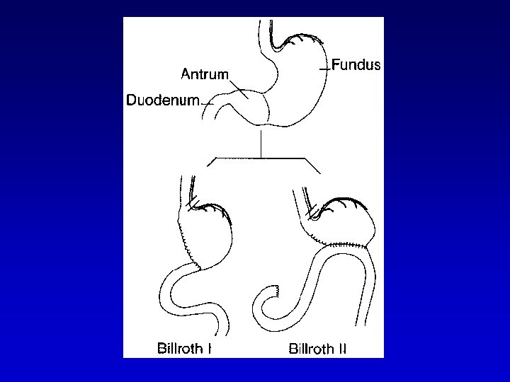 Surgery DU • Refractory bleeding (~5% of transfused Pts) • Perforation (2 3%) • Outlet obstruction • Vagotomy + antrectomy Rec. (1%) Comp Vagotomy + pyloroplasty intermediate (10%) Highly selective vagotomy Rec. Comp