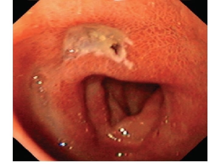 Endoscopy in GU q If a radiologic benign-appearing GU respond to medical therapy and has no alarm features, is reasonable to a medical therapy course for 8 -12 weeks before an endoscopy. q If has not healed within that period, at least four jumbo biopsies or seven regular biopsies should be obtained.