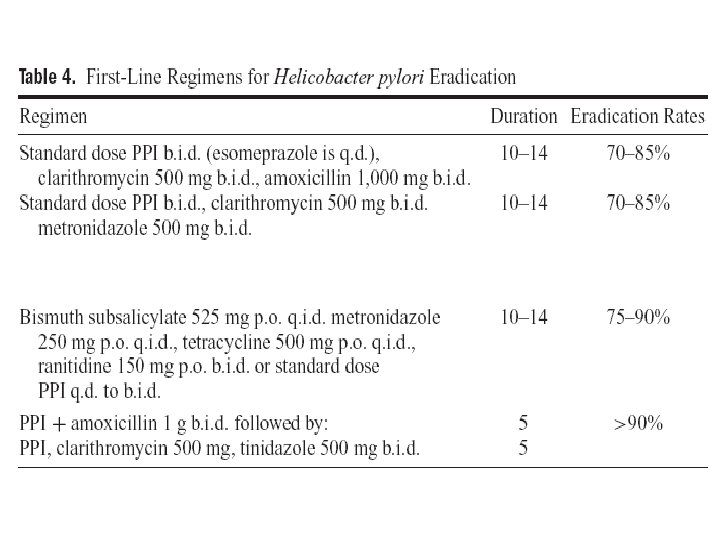 Treatment of H. pylori Infection q PPI should be used b. i. d q H 2 RA can be substituted if a patient cannot tolerate PPI