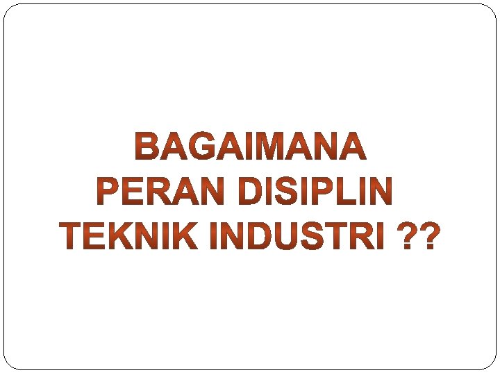 PERAN DISIPLIN TEKNIK INDUSTRI DALAM LEVEL SISTEM INDUSTRI Mikro Meso Makro Laboratorium Sistem Manufaktur *** * * Laboratorium Ergonomi & Perancangan Sistem *** ** *** *** * ** Laboratorium perancangan sistem & manajemen industri Laboratorium Komputerisasi & Optimasi Industri Laboratorium Logistics and Supply Chain Management (LSCM)