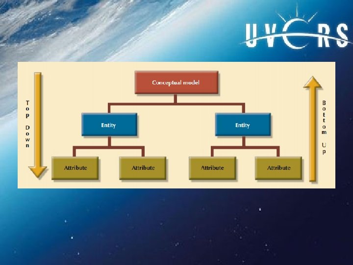 Ada 2 pendekatan untuk perancangan database: 1. Top-down design dimulai dengan mengidentifikasi data set dan kemudian menentukan data element untuk setiap set. Proses ini melibatkan identifikasi jenis entity yang berbeda dan penentuan attribute entity. 2. Bottom-up design dimulai dengan mengidentifikasi data element (item) dan kemudian mengelompokkannya ke dalam data set. Dengan kata lain, tentukan attribute terlebih dahulu, baru kemudian mengelompokkan mereka ke dalam entity.
