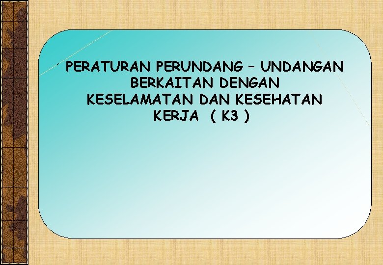 PERATURAN PERUNDANG – UNDANGAN BERKAITAN DENGAN KESELAMATAN DAN KESEHATAN KERJA ( K 3 )