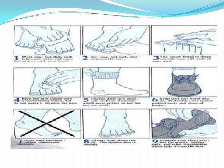 v. Jika menggunting kuku, gunting kuku merata melintang. v. Oleskan lotion agar kulit tetap lembut, tetapi jangan dioleskan pada sela-sela jari kaki