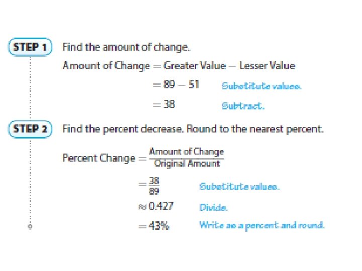 1. The number of students in a chess club decreased from 18 to 12. What is the percent decrease? Round to the nearest percent. 2. Officer Friendly wrote 16 tickets for traffic violations last week, but only 10 tickets this week. What is the percent decrease?