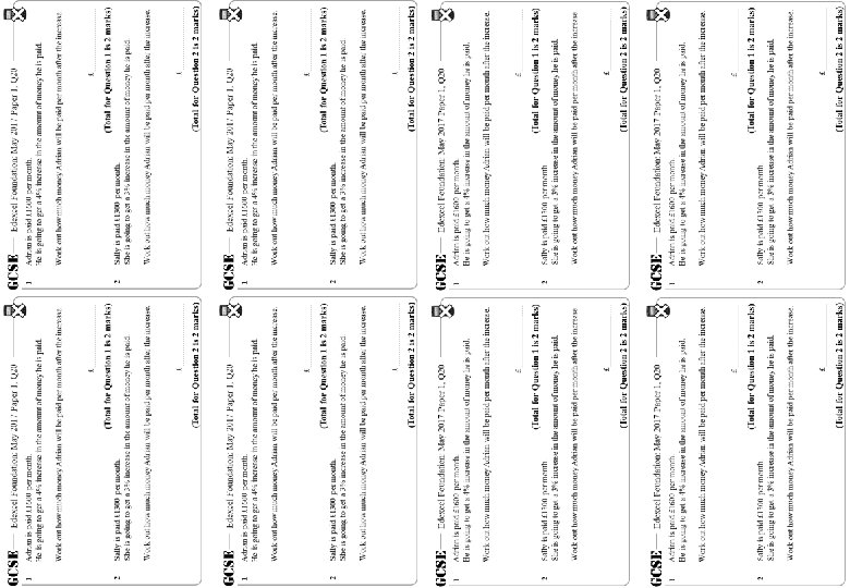 Percentage – Increase & Decrease – Foundation – GCSE Questions These questions are the same format as previous GCSE exams. COPY means they use the exact same numbers as the original GCSE question. Otherwise, they are clone questions using different numbers. The worksheets are provided in a variety of sizes.