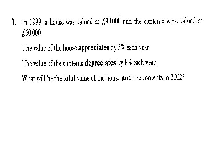 Quicker Method Easier N 5 Num %Average £ house price in Ayr has appreciated by 79% over past 10010 years. 64995 179 If you bought the house for £ 64995 ten years ago in 2005 how much would the house be worth in 2015 ? Appreciation New value Friday, June 18, 2021 Just working out percentages = 79% x £ 64995 = 0. 79 x £ 64995 = £ 51346. 05 = Old Value + Appreciation = £ 64995 + £ 51346. 05 = £ 116341. 05 created by Mr. lafferty @ www. mathsrevision. com 33