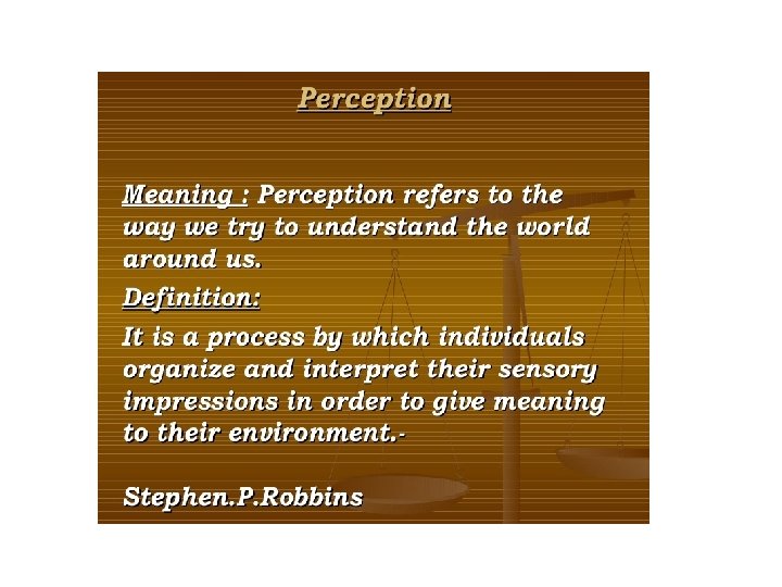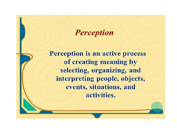 II. PERCEPTUAL MECHANISM When a person receives information, he tries to process it through the following sub processes of : (a) Perceptual Selection (b) Perceptual Organisation © Perceptual Interpretation
