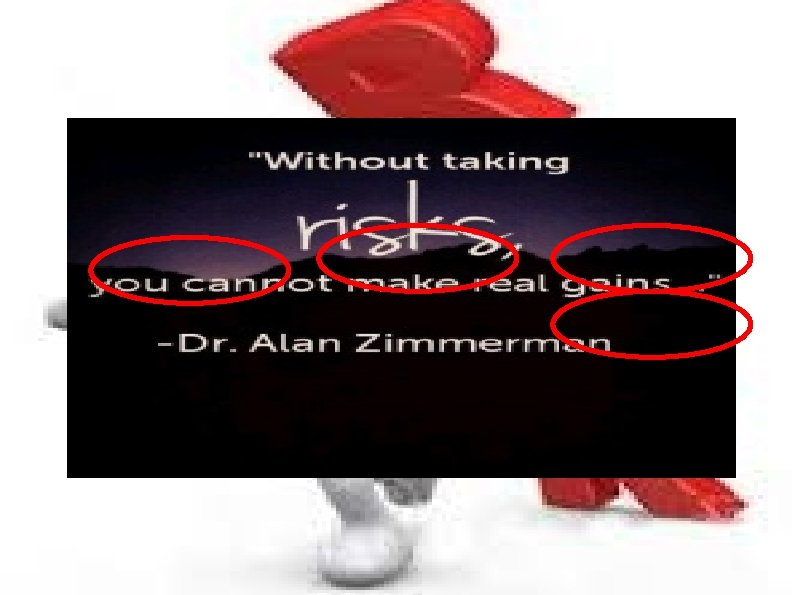 Why take a risk? ? • Often has direct benefits…”the gamble” • Triggers dopamine (“thrill”) - important! • Psychological gains!: • Risk = learning • Learning = growth • Growth = adaptation and success • (absence of growth = stagnation/decay)