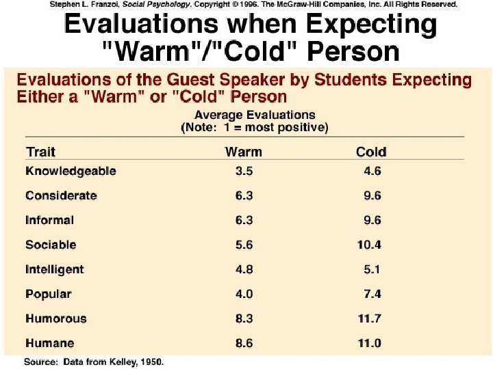 Teorie implicite • T. I. agiscono come schemi • Ad esempio: valutazioni di studenti nei confronti di un supplente che si aspettano caldo o freddo