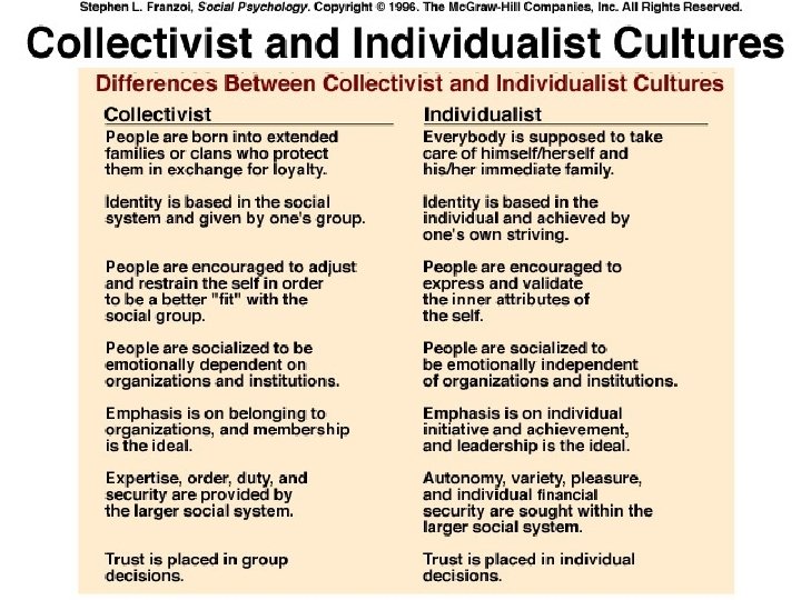 T. I. • T. I. sono molto spesso teorie largamente condivise nell’ambito di uno stesso contesto storico e culturale. • T. I. dipendono da modo di concettualizzare la persona : individualismo /collettivismo