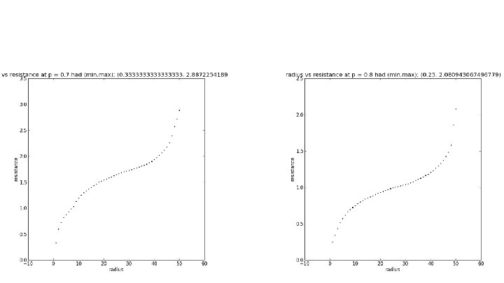 Max Cluster Size (zoomed in) Zooming in near the critical probability yields an ambiguous region:
