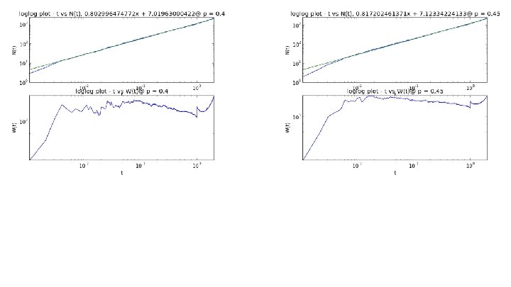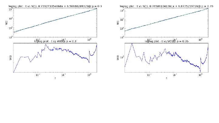Random Walks Random walks on percolation clusters are of interest because cluster graphs are not regular (different vertices have different number of neighbors) Random walk: start at a random vertex in the maximal cluster and move to one of its neighboring vertices with equal probability. Can either be recurrent or transient. ● Recurrent: ○ Infinite - walk returns to starting position infinitely many times with probability 1 ○ Finite - walk returns to starting position at some step **We random walks on maximum clusters to simulate walks on infinite
