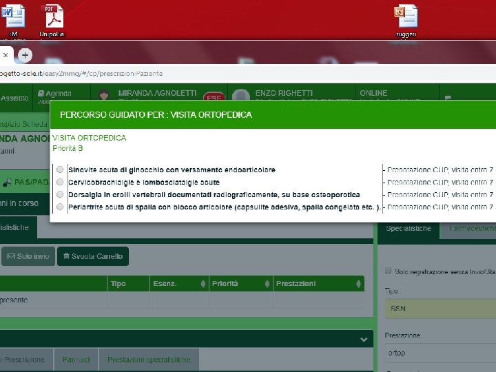 INDICAZIONI PER L'ACCESSO ALLA VISITA ORTOPEDICA PRIORITARIA Versamento endoarticolare in sinovite acuta resistente alla terapia Presenza di versamento, dolore, impotenza funzionale acuti, nonostante adeguata terapia per almeno 7 gg. In caso di sinovite di ginocchio utile RX convenzionale (sottocarico); non indicata ecografia. Se sinovite cronica richiedere visita ortopedica ordinaria. Prenotazione CUP.