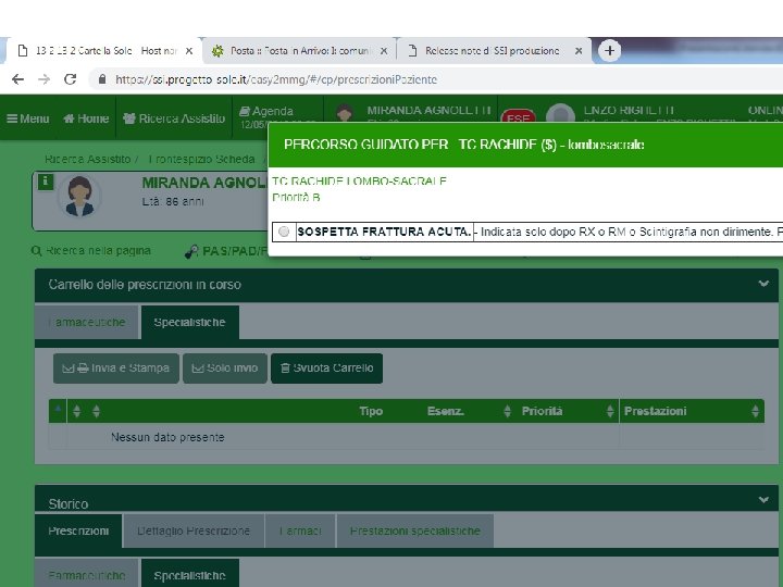 Lombo-dorsalgia acuta in pz con crolli vertebrali di nuovo riscontro documentati radiograficamente In caso di evidenza radiologica di un pregresso crollo vertebrale in assenza di sintomatologia dolorosa acuta inviare con visita ortopedica ordinaria. Prenotazione CUP. Se indicata vertebroplastica l’ortopedico attiva il percorso di presa in carico con la UO Neuroradiologia RN (0541 -705494) con tac in visione;