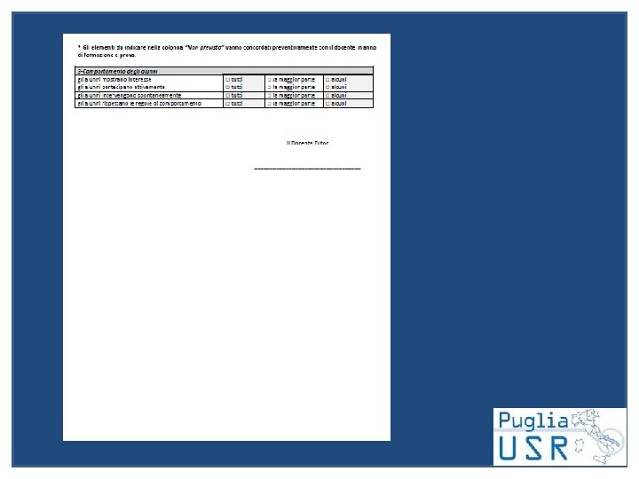 OSSERVAZIONE Il docente tutor compila una griglia di osservazione contenente descrizioni di comportamenti e azioni.