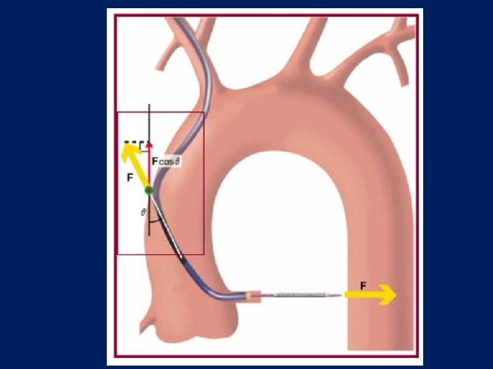 Backup force • 3 factors – Catheter size – Area of contact made by cath on Ao – Angle (theta) of cath on the reverse side of Ao • The angle (theta) determines the force that can dislodge the guiding catheter.