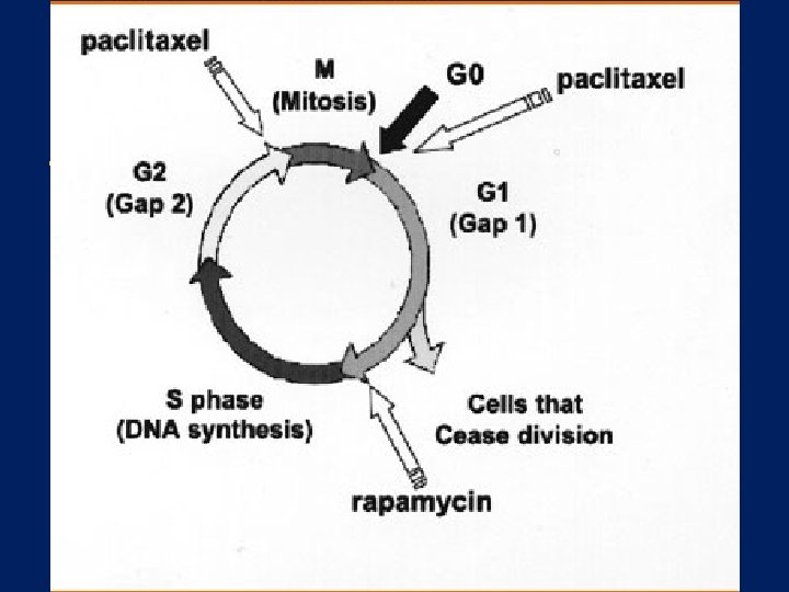 Paclitaxel • Mitotic inhibitor isolated it from bark of the Pacific yew tree, Taxus brevifolia, hence named taxol • Stabilizes microtubules→ interferes with the N breakdown of microtubules during cell division→prevents DNA synth • Paclitaxel-inhibited cells remain at the G 0/G 1 and G 2/M interfaces of the cell cycle • Cells exposed to paclitaxel undergo apoptosis/cell death- cytotoxic