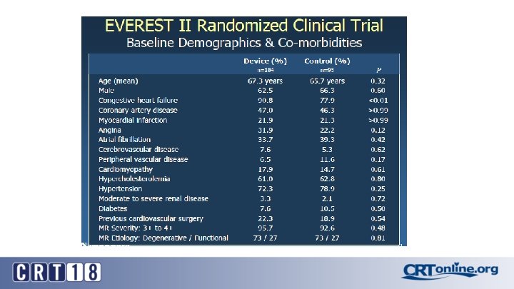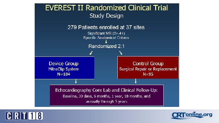 EVEREST II 1 -Year Results “percutaneous repair less effective… but associated with superior safety” Device Control (Surgery) Death 6% 6% Surgery for MV dysfunction 20% 2% Grade 3+ or 4+ MR 21% 20% Primary End-Point (freedom from death, MV surgery or MR grade 3 -4) MACE 55% 73% 15% 48% Feldman et al. NEJM 2011; 364: 1395 -406