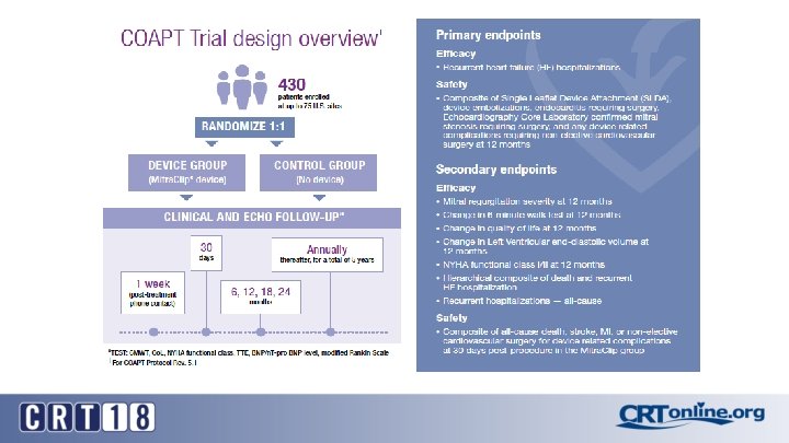 Ongoing Mitra. Clip Trials • COAPT: Clinical Outcomes Assessment of the Mitra. Clip Percutaneous Therapy for Extremely High-Surgical Risk Patients (NCT: 01626079)