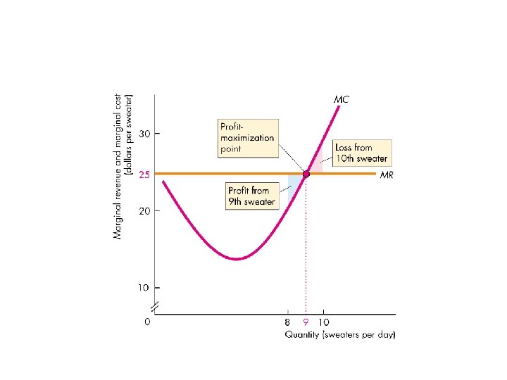 *The second way is MR &MC: marginal revenue is constant and marginal cost increases as output increases, profit is maximized by producing the output at which marginal revenue, MR, equals marginal cost. MC *This figure on the next slide shows the marginal analysis that determines the profit-maximizing output. The conditions of equilibrium of producer: 1 -MR=MC 2 -MC is increasing.