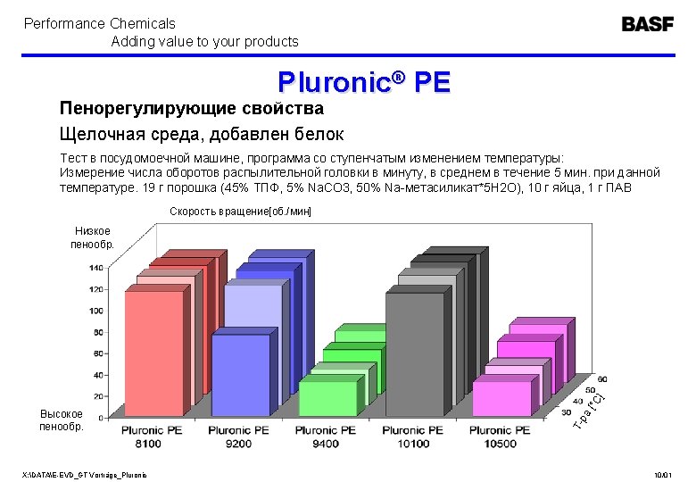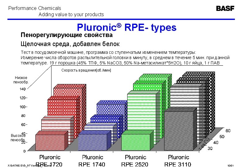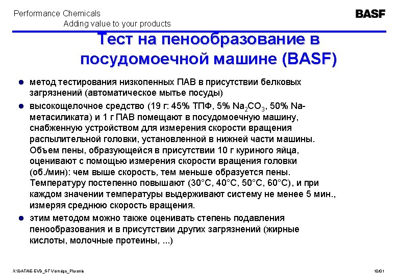 Performance Chemicals Adding value to your products Тест на пенообразование в посудомоечной машине X: DATAE-EVD_GT Vorträge_Pluronic 10/01