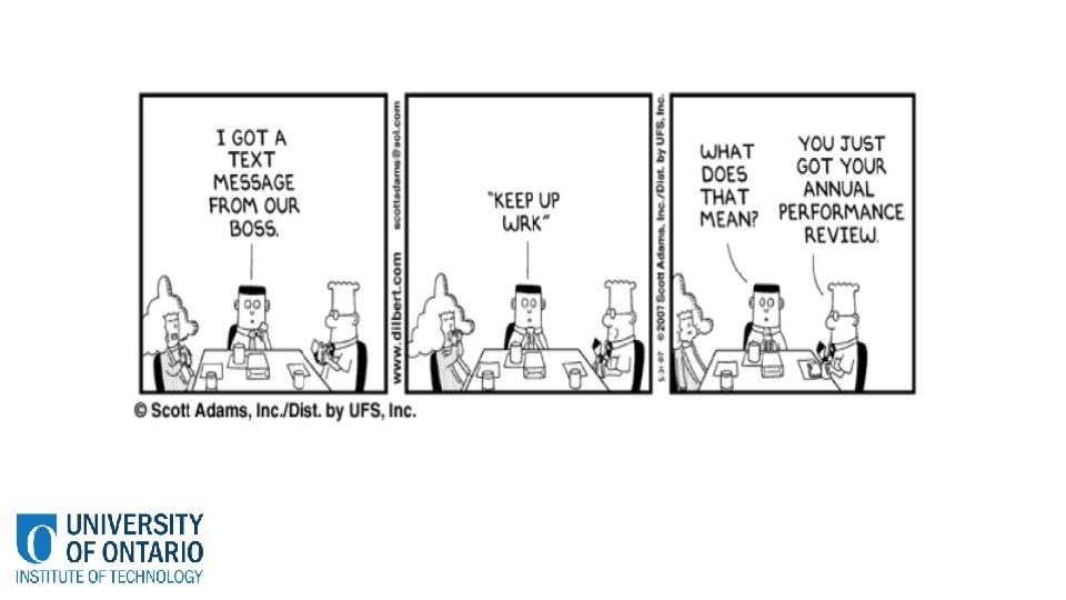 Vision… • UOIT strives to be an organization in which managers have meaningful, constructive, regular conversations with their employees that positively impact performance, productivity and development. • We want Performance Conversations that Matter and a plan that will be an ongoing, forward-looking, collaborative process in which managers develop employees considering the university’s values and strategy. • Dialogue will focus on individual goals for performance, competency development*, learning and career progression.