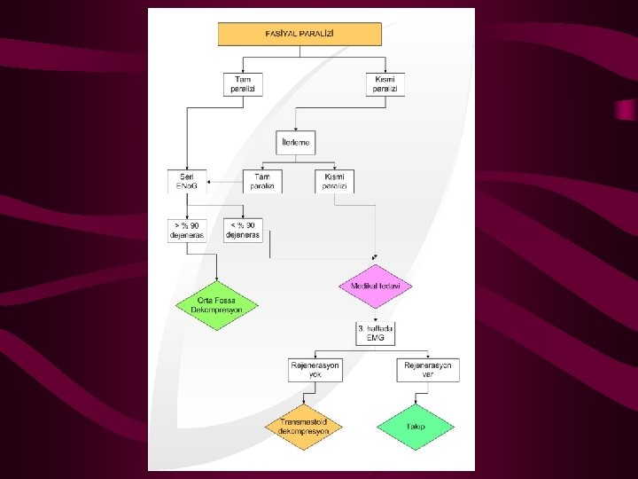 Etyoloji • İnfeksiyon – – – – Herpes zoster oticus Otitis media Bulbar palsy İnfeksiyoz mononukleoz Botulismus Tetanoz Sifiliz Lyme hastalığı