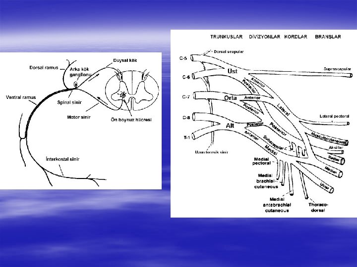 Periferik Sinir – Tanımlama § Periferik sinirlerin tamamı duyusal ve motor, bazılarıda otonom sinir liflerini ve refleks arkını içerir. § Periferik sinir (çevresel sinir, spinal sinir); omuriliğin ön ve arka köklerinin omurilik dışında birleşmesi sonrasında meydana gelir. 31 çift spinal sinir vardır : 8 çift servikal 12 çift torakal 5 çift lomber 5 çift sakral 1 çift koksigeal