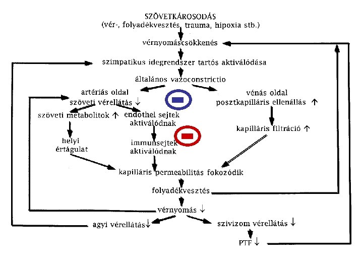 Dekompenzációs pozitív feed back mechanizmusok - szívelégtelenség - acidózis - alacsony agyi áramlás - véralvadás megváltozása - a RES aktivitásának csökkenése