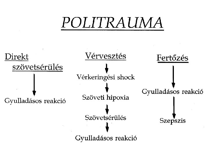 Multietiológiájú, sokk szindróma Első szakasz: oxigén hiány Késői szakasz: immunrendszert túlaktiváló folyamatok (közös kórélettani folyamatok)