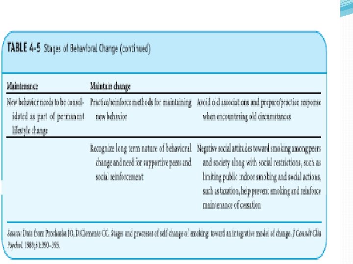 PERUBAHAN PERILAKU �Teori S-O-R: Stimulus-Organisme-Respons �Teori “Dissonance” oleh Leon Festinger �Teori fungsi oleh Daniel Katz �Teori “Driving forces” oleh Kurt Lewin �Teori Prohaska dan Clemente : 1. Precontemplation 2. Contemplation 3. Preparation 4. Action 5. Maintenance