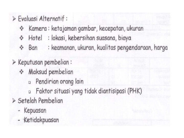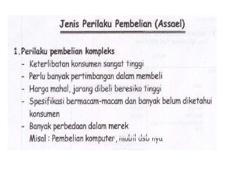 Fungsi Model Perilaku Konsumen 1. Deskriptif : Pendalaman langkah-langkah konsumen dlm menentukan suatu pembelian yang diambil 2. Prediksi : Meramalkan kejadian-kejadian dari aktivitas konsumen pada waktu yang akan datang Misal : Meramal merek produk yang paling mudah diingat oleh konsumen 3. Explantion pembelian : Mempelajari sebab-sebab dari aktivitas Misal : Mengapa konsumen suka membeli merek tertentu 4. Pengendalian : Mempengaruhi & mengendalikan aktivitas konsumen pada masa yang akan datang