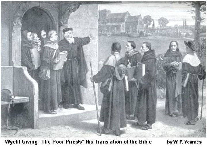 2. John Wyclif (1320 -1384) a. He believed the church should only follow Scripture. • This view foreshadowed Martin Luther’s Reformation in the early 16 th century. b. He translated the Bible into English. c. His later followers were known as Lollards.