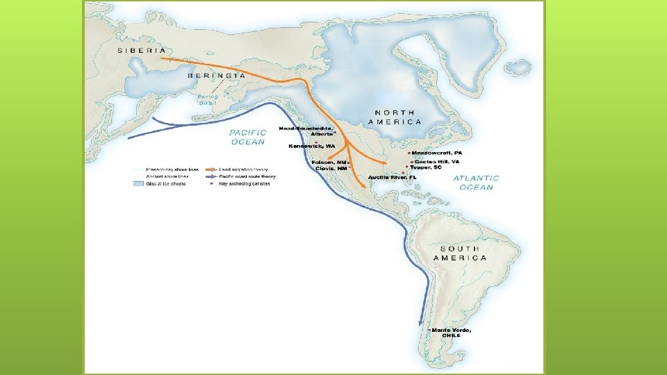 The First Americans 60 million people occupied the Americas when Europeans arrived 13, 000 and 30, 000 BCE first migratory stream of people 6, 000 BCE second wave of migratory people; predecessors of the Navajos and apaches 3, 000 BCE ancestors of the Aleut and Inuit came and settled