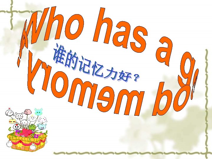 Make up a story. Each student adds one or two sentences according to the clues. 1. Where and when did you go? 5. What did you do there? 2. Who did you go with? 6. Who did you meet? 3. How was the weather ? 7. How did you feel? 4. How did you go there? 8. Do you want to go there again?