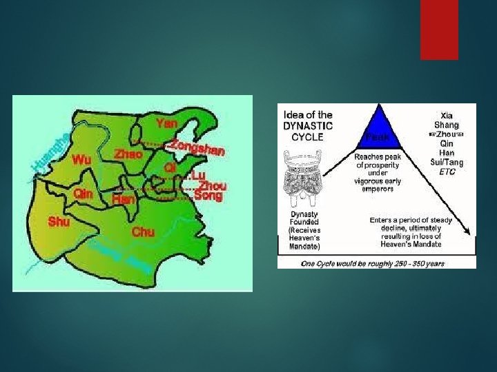 Qin � Began after the chaos of the Warring States Period (c. 500 BCE – c. 220 BCE) � 20 warlords fighting for power of China, until 220 BCE � Chinese believed heavens would provide them with a ruler who would establish a family line, a dynasty who would rule until its leaders displeased the powers in heaven � Called the Mandate of Heaven