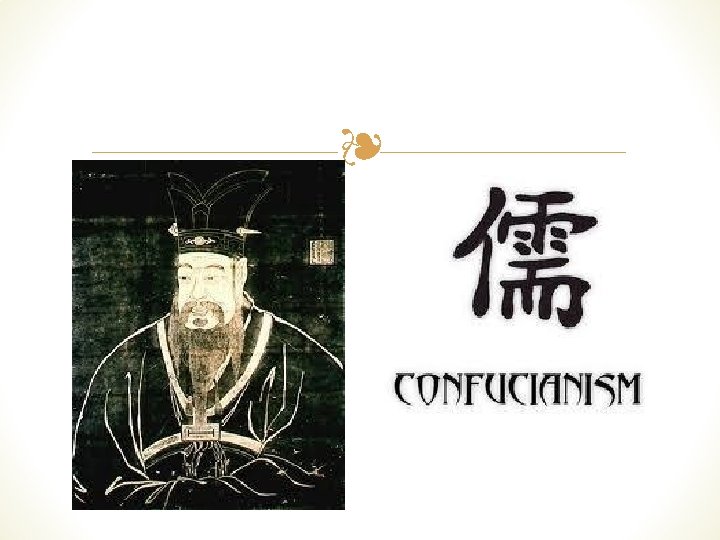 Confucianism ❧ ❧ During the Warring States period in China (c. 500 BCE) ❧ Founder: Kong Fu Zi, (Confucius) ❧ Teaching compiled post-mortem in The Analects ❧ Set a clear set of rules for moral behavior and family and political order ❧ Filial Piety ❧ utmost respect for parents ❧ Obedience to those in political control