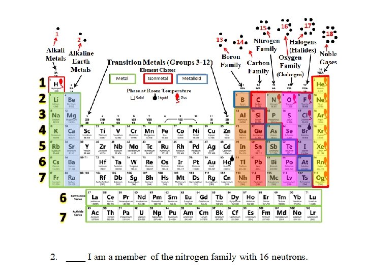 1 15 2 Alkaline Metals Earth Metals 1 2 3 4 5 6 7 13 Transition Metals (Groups 3 -12) 16 17 18 Nitrogen Halogens Family (Halides) Noble Boron Oxygen Gases Family Carbon Family (Chalcogen) 14 e? v a h n m u ol c h c a e s oe d s n o r t e! 6 l c b e l a e t r e u c n o y o ale t v s y e n r a u t m c u w r t o s H s i w e L 7 Add the