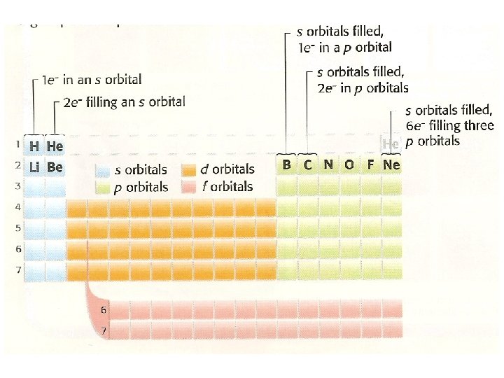 • Create a table: and complete for the following elements element energy level orbitals number of e____________________ H 1 s 1 ____________________ He 1 s 2 ____________________ Li 1 s 2 2 s 1