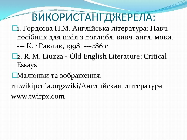 OLD ENGLISH PROSE �most prose was written in Latin until the late 800 s; �“Ecclasiastical History of the English Nation” written by monk venerable Bede – the first history of the English people and a valuable source of information about English life from the late 500 s to 731; �during 990 s a monk Aelfrik wrote a series of homilies (short moral essays); �from about 892 to 1154 a number of authors contributed to the “Anglo-Saxon Chronicle”- a record of current events in England.